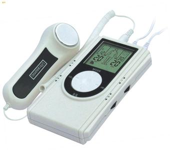 仪,这款治疗仪是通过延伸出的圆形贴片进行脉冲按摩,包装小巧便于携带,并且在便携盒内侧包含了镜子可做梳妆使用,使用纽扣电池供电。